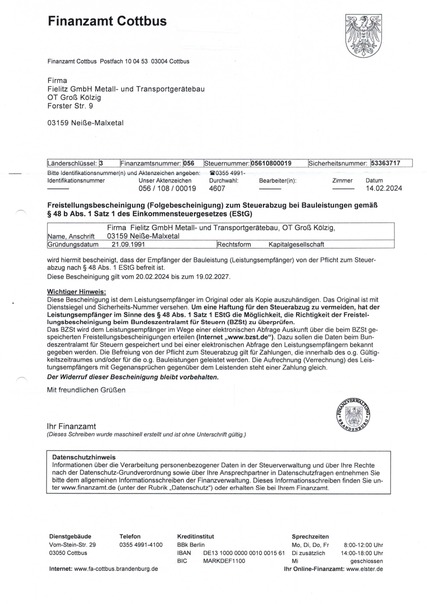 Freistellungsbescheinigung